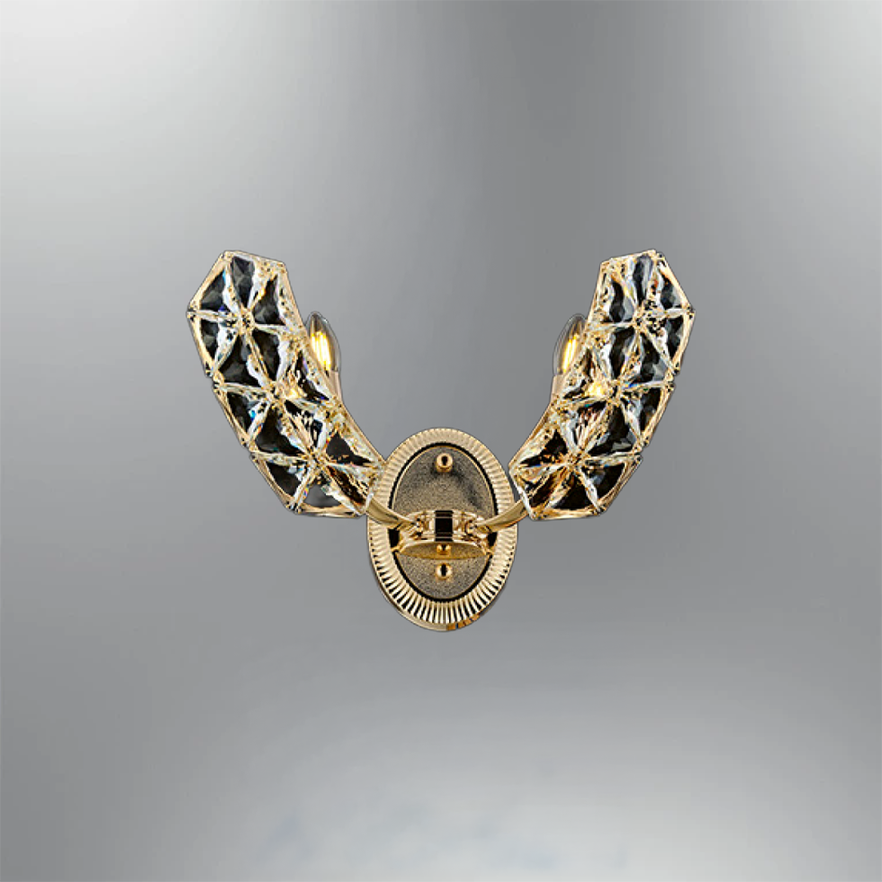 Metal-Kristal malzemeden yapılmış , 2xE14 ampul kullanan bir aplik modelidir.