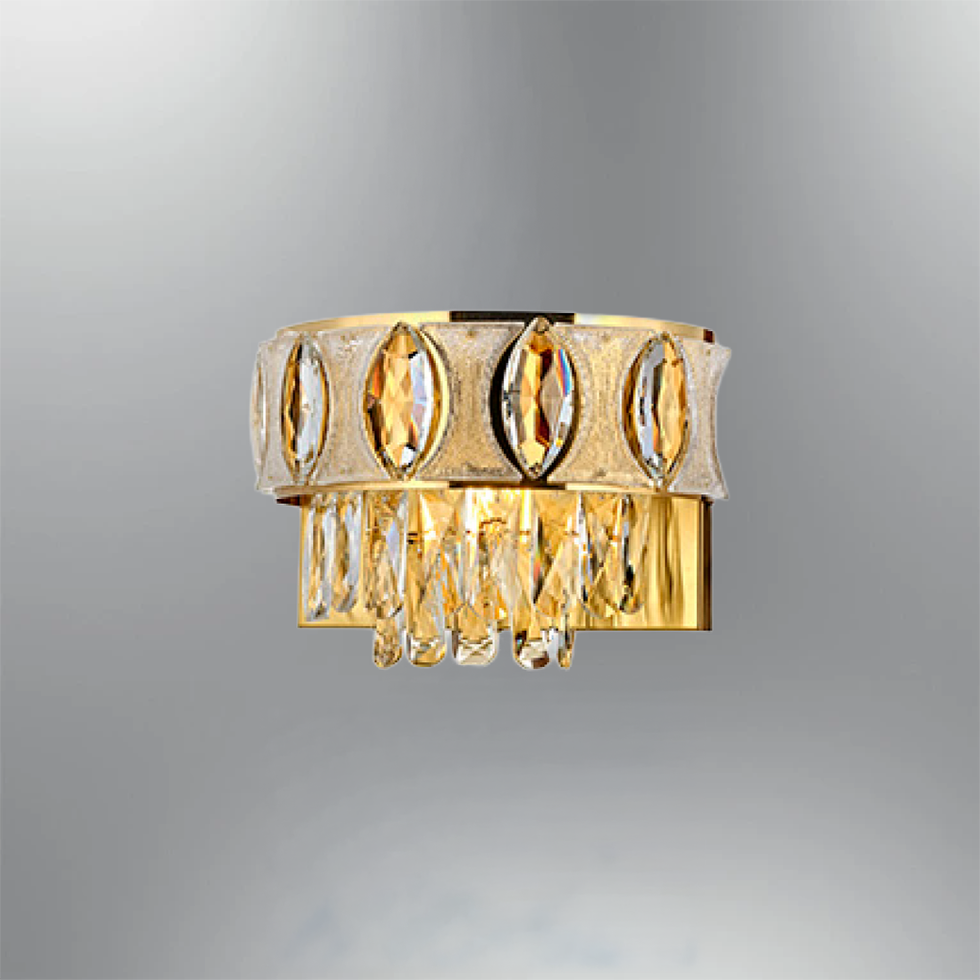 Eskitme renginde Metal-Kristal malzemeli bu apliğin aydınlatması 1xE14 ampul ile sağlanır. Genişliği 30cm, yüksekliği 30-20cm'dir.